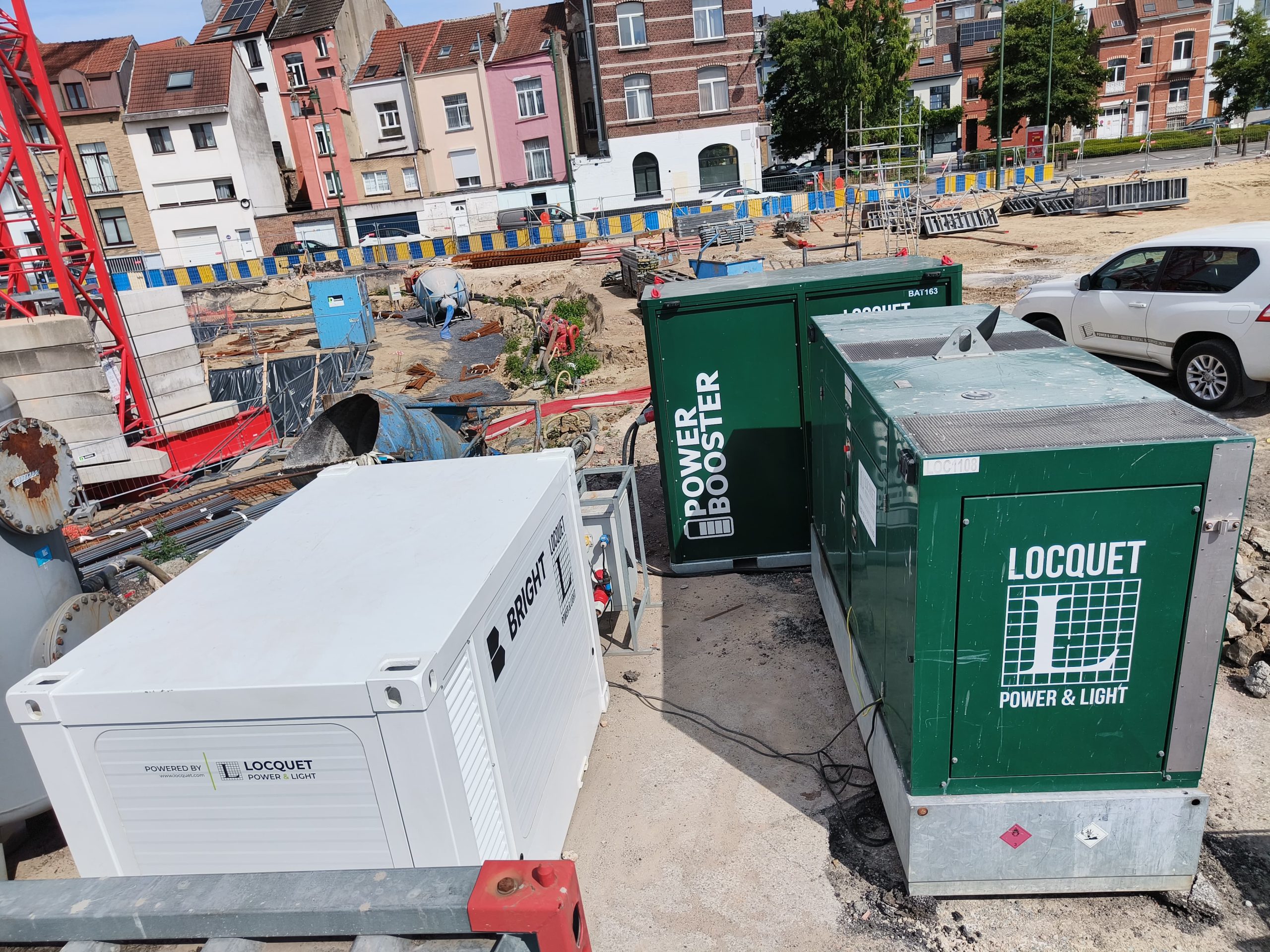 Locquet Power & Light zet een nieuwe stap in het verduurzamen van bouwwerven. Samen met Bright Energy bieden we batterijsystemen die verder gaan dan energieopslag alleen. De combinatie van hardware en software maakt werven slimmer en properder. Waarom Bright Energy? Bright Energy ontwikkelt batterijen met innovatieve software. Hun systemen vangen niet alleen stroompieken op. Ze monitoren ook het verbruik per stroomkring. De stopcontacten zijn meetbaar en stuurbaar. Deze gedetailleerde inzichten waren voor ons een belangrijke meerwaarde. Onze eigen Powerbooster batterijen doen uitstekend werk. Ze vangen pieken op waar nodig. Maar ze meten het totale verbruik. Niet per individuele kring. Met Bright Energy zullen we in de toekomst ook onze eigen powerbooster stuurbaar maken. We zien exact waar energie naartoe gaat op een werf.Samenwerking die beide versterkt De samenwerking werkt twee kanten op. Wij helpen Bright Energy met logistiek en verhuur. Zij hadden tien systemen in eigen beheer. Maar het beheren van die vloot is complex. Wij hebben 13 jaar ervaring met mobiele batterijsystemen. Ons netwerk en onze logistiek maken het verschil. Andersom helpen wij Bright Energy innoveren. Hun systemen werkten oorspronkelijk alleen met het elektriciteitsnet. Wij ontwikkelen samen off-grid oplossingen. De batterijen kunnen nu ook met generatoren communiceren. Ze starten de generator automatisch om bij te laden.Concreet probleem, concrete oplossing Vroeger moest je met een kleine netaansluiting toch een generator plaatsen. Een torenkraan vraagt veel vermogen bij het hijsen. Een 32 ampère netaansluiting kan die piek niet leveren. Daarom draaide er een 100 of 150 kVA generator. Vaak de hele dag voor slechts enkele pieken. Met het Bright Energy systeem verandert dat. De batterij vult de piek aan. Het net levert 32 ampère. De batterij levert de ontbrekende ampères om de piek op te vangen. Samen is dat genoeg voor de torenkraan. Zonder generator. Zonder dieselverbruik. Zonder CO₂ uitstoot. Slim schakelen bespaart energie Het platform van Bright Energy is gebruiksvriendelijk. Je tekent je werf eenvoudig in het systeem. Per kring koppel je de verbruikers. Zo zie je direct welke uitgang naar welk deel van de werf gaat. Maar het gaat verder. Je kunt timers instellen per kring. De werfketen gaat ’s nachts automatisch uit. Geen sluimerverbruik meer van de verwarming of computers. Sommige klanten besparen zo honderden kilowattuur per maand. Ook de kostenberekening wordt gedetailleerd. Je ziet het verbruik en de kosten per kring. Werk je met onderaannemers? Dan kun je het verbruik correct doorfactureren. Transparant en eerlijk.Voldoen aan strengere regelgeving De druk op bouwwerven neemt toe. De CO₂ prestatieladder vraagt om lagere uitstoot. In Brussel en Antwerpen Centrum mag je sinds 1 januari geen oude generatoren meer gebruiken. Stage V machines zijn verplicht. Maar die hebben een probleem. Een Stage V generator moet minimaal 30% belast draaien. Anders treedt er vervuiling op in het systeem. Na enkele uren geeft hij een foutmelding. Met lage belasting gaat hij kapot. Een batterij lost dit op. De generator draait alleen op optimaal rendement. De batterij vangt de rest op.Technische meerwaarde De Bright Energy batterij doet meer dan energie bufferen. Het systeem zorgt voor goede stroomkwaliteit en spreiding van de belasting over de verschillende fases om zo optimaal het aanwezige net te kunnen benutten. Bij ongelijke belasting van de drie fasen ontstaat netvervuiling. Het systeem herkent dit. Het herverdeelt de belasting gelijkmatig over de fasen. De reactietijd is bliksemsnel. Het systeem reageert binnen milliseconden op extra vraag. Volledig automatisch. De werfleider hoeft niets te doen.Hoe werkt het in de praktijk? We beginnen met een analyse als energie architecten. Wat zijn de verbruikers op de werf? Welke netaansluiting is beschikbaar? We berekenen welk systeem past. Een 80 kVA of 160 kVA batterij. We adviseren over de opbouw van stroomkringen. Samen met de klant tekenen we het plan in het platform. We specificeren de torenkraan met de juiste hijsmotor. EV laadpalen krijgen een apart kanaal. Na levering overlopen we het systeem. We leggen uit hoe timers werken. Hoe je kringen schakelt. Na een maand komen we terug. Hoe loopt het? Kunnen we verder optimaliseren? We bekijken samen de rapporten. Zo leert de klant het systeem steeds beter kennen.Resultaten die tellen Klanten merken snel voordelen. Werven worden stiller. Er is geen lawaaihinder meer van generatoren. De continuïteit verbetert. Een lege dieseltank legt de werf stil. Een batterij heeft altijd reserve. Zelfs als het net wegvalt blijft er stroom. Het bereik van één systeem is groter. Vroeger hadden klanten een kleine generator voor bronbemaling. En een grote voor de torenkraan. Nu kan één systeem beide voeden. Dat bespaart logistiek en dieselverbruik.Buiten de bouwsector De toepassingen reiken verder. Bij events helpen batterijen met tijdelijke EV charging. Of bij ledschermen die het net vervuilen. Het systeem levert stabiele stroom en schoont de vervuiling op. Ook bij netcongestie bieden batterijen uitkomst. Bedrijven krijgen geen zwaardere aansluiting. Met een batterij kunnen ze toch startende motoren voeden. Of pieken opvangen in de productie.Toekomstplannen We integreren in 2026 onze batterijsystemen in het Bright Energy platform. Daarnaast bouwen we ook aan grotere systemen met meer autonomie/kWh. Zo krijgen onze klanten één uniform systeem. We helpen Bright Energy verder met off-grid oplossingen. Hoe kunnen batterijen en generatoren optimaal samenwerken? Die ontwikkeling loopt al. Samen groeien we. Voor elke klant de beste oplossing.Energieopslag wordt onmisbaar De komende vijf jaar wordt energieopslag steeds belangrijker. Netcongestie neemt toe. Nieuwe aansluitingen zijn vaak niet mogelijk. Batterijen bieden de oplossing. Ze slaan overschot van zonnepanelen op. Of energie van generatoren. Later geeft de batterij die af. De groei
