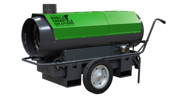 Mobiel, oliegestookt verwarmingstoestel met rookgasafvoer en interne tank. Geschikt voor: