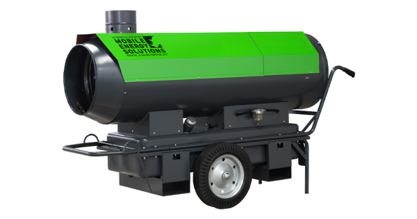 Mobiel, oliegestookt verwarmingstoestel met rookgasafvoer en interne tank. Geschikt voor: