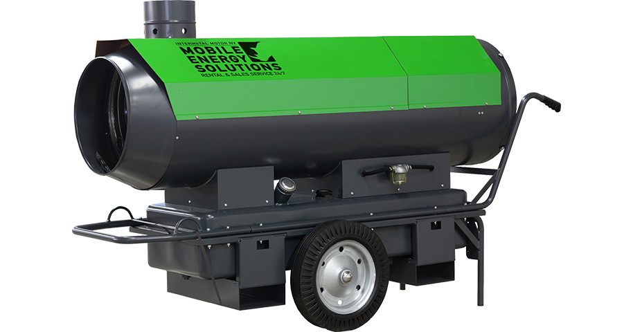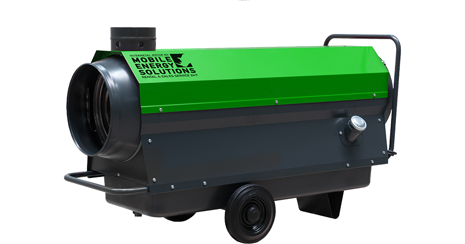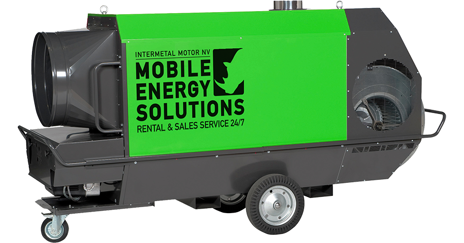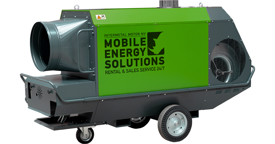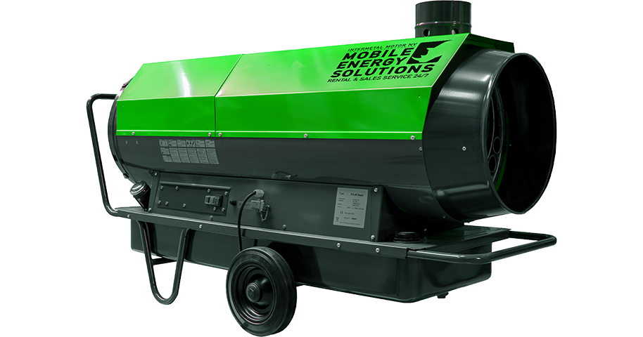 Mobiel oliegestookt verwarmingstoestel met rookgasafvoer.