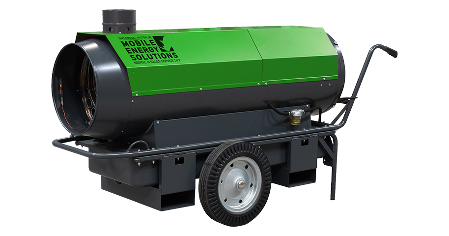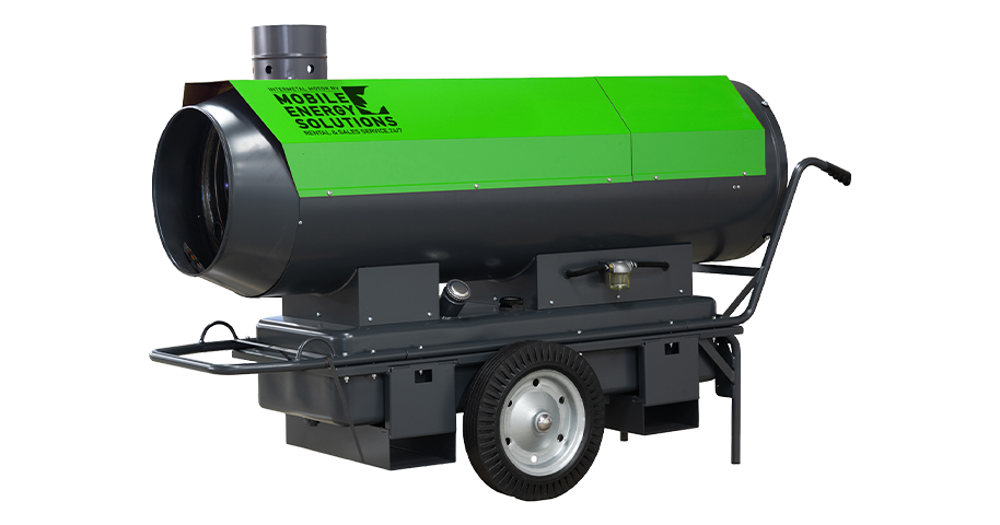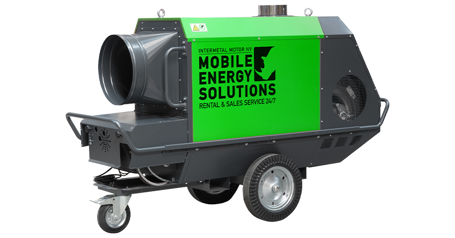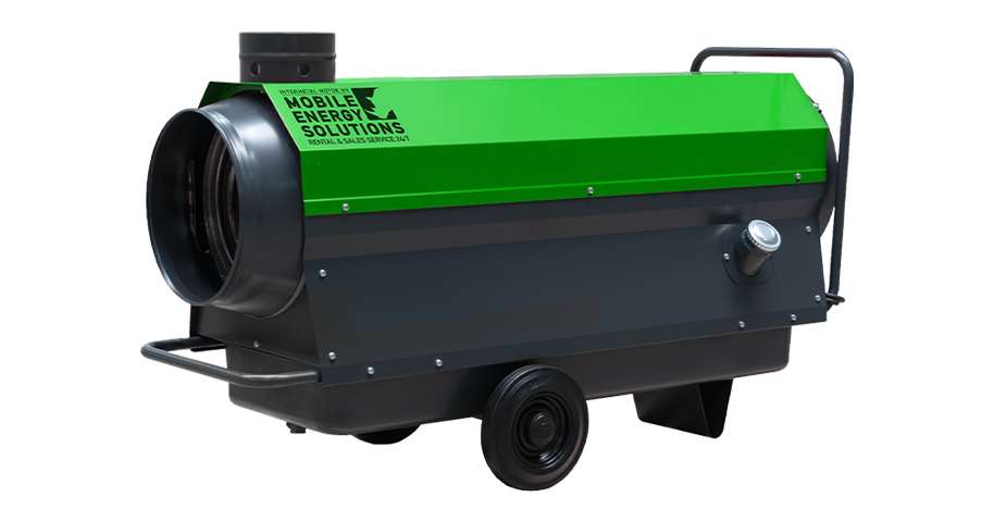 Mobiel, oliegestookt monofasig verwarmingstoestel met rookgasafvoer.